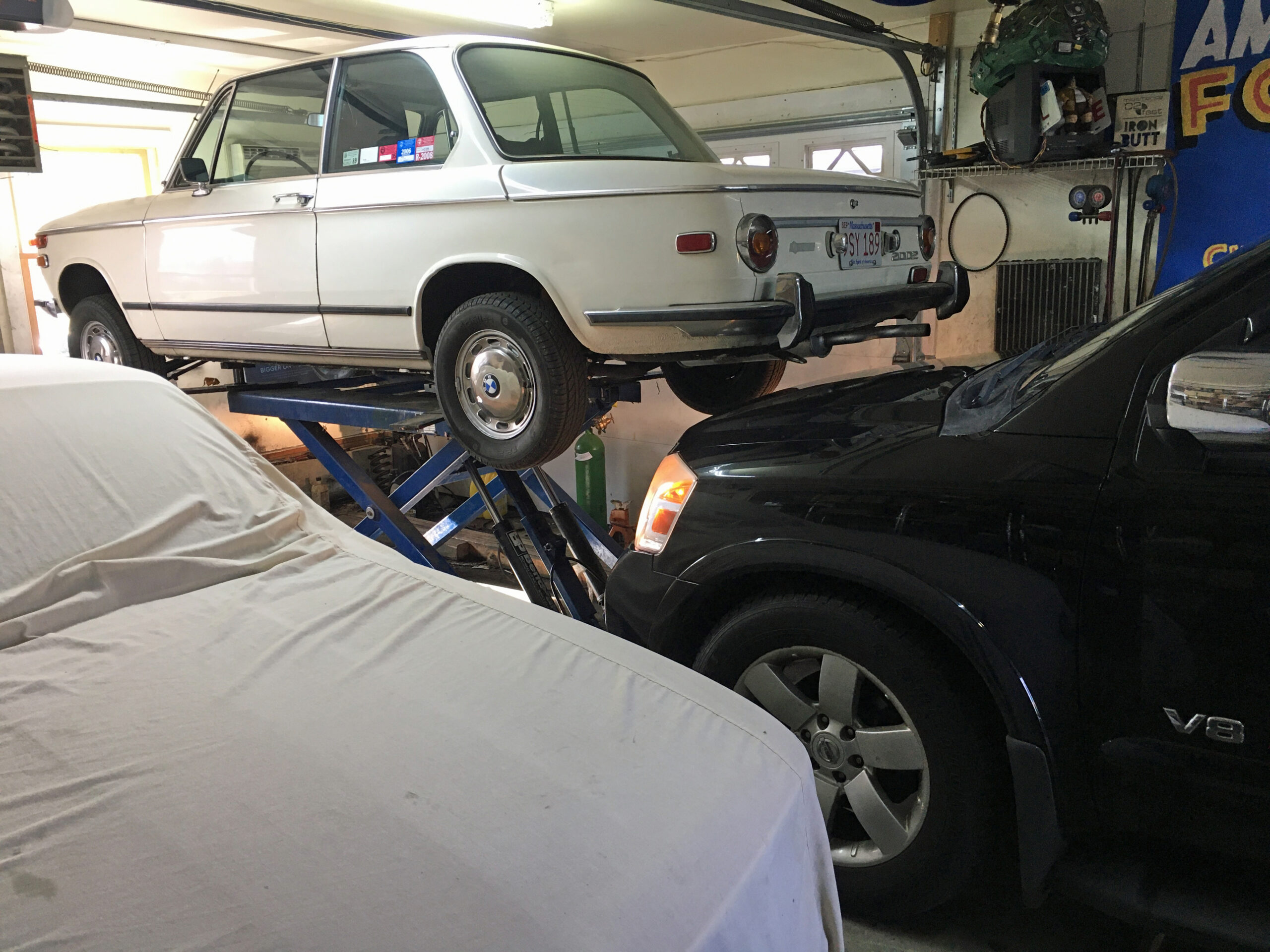 But I knew that this couldn’t be the cause, because I clearly recalled removing the hose clamp. I wondered what I could’ve done wrong in the shifter-bushing installation that caused something to hit the giubo. I nudged the car back into the garage and onto the ramps that flank the mid-rise lift, put the car in the air, and skooched under it.