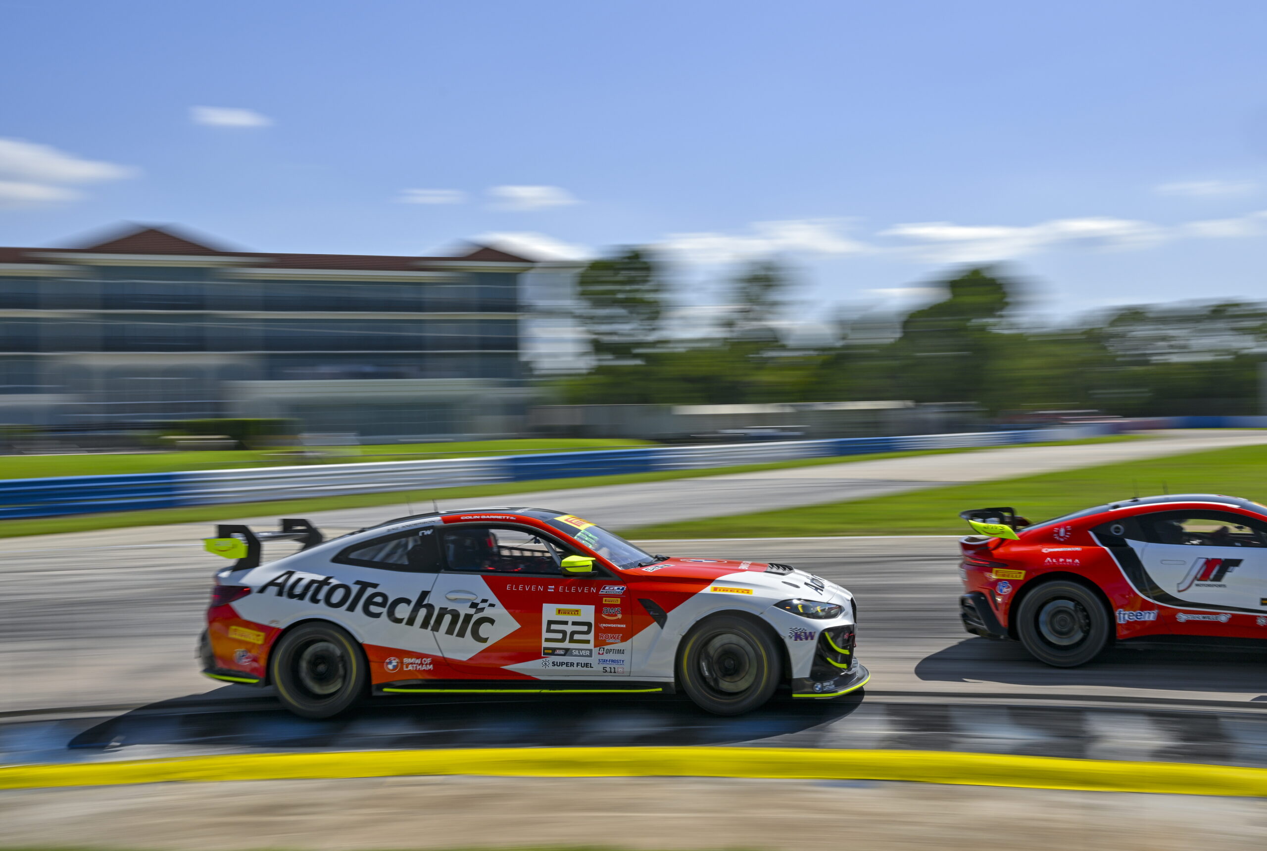 The BMWs didn’t look all that competitive in qualifying. The #99 Random Vandals Racing M4 GT4 EVO of Kenton Koch and Kevin Boehm was the fastest BMW in both sessions but was only sixth fastest in qualifying for race one and race two. We’ve seen time and again that the BMWs race better than they qualify, and that was certainly the case at Sebring. In race one, Kevin Boehm worked his way to the front in the #99 car, and that car took the lead after pit stops, with Kenton Koch holding on for the win. “The track was slippery, and I was just trying to figure out how much I could push without it all falling off a cliff,” said Boehm. “I think I found that limit pretty well and started making some moves. Before I knew it, my stint was over. Huge credit to Kenton for taking over and doing what he does best.” The #52 Auto Technic Racing M4 GT4 EVO of Zac Anderson and Colin Garrett finished third in the Silver class.
