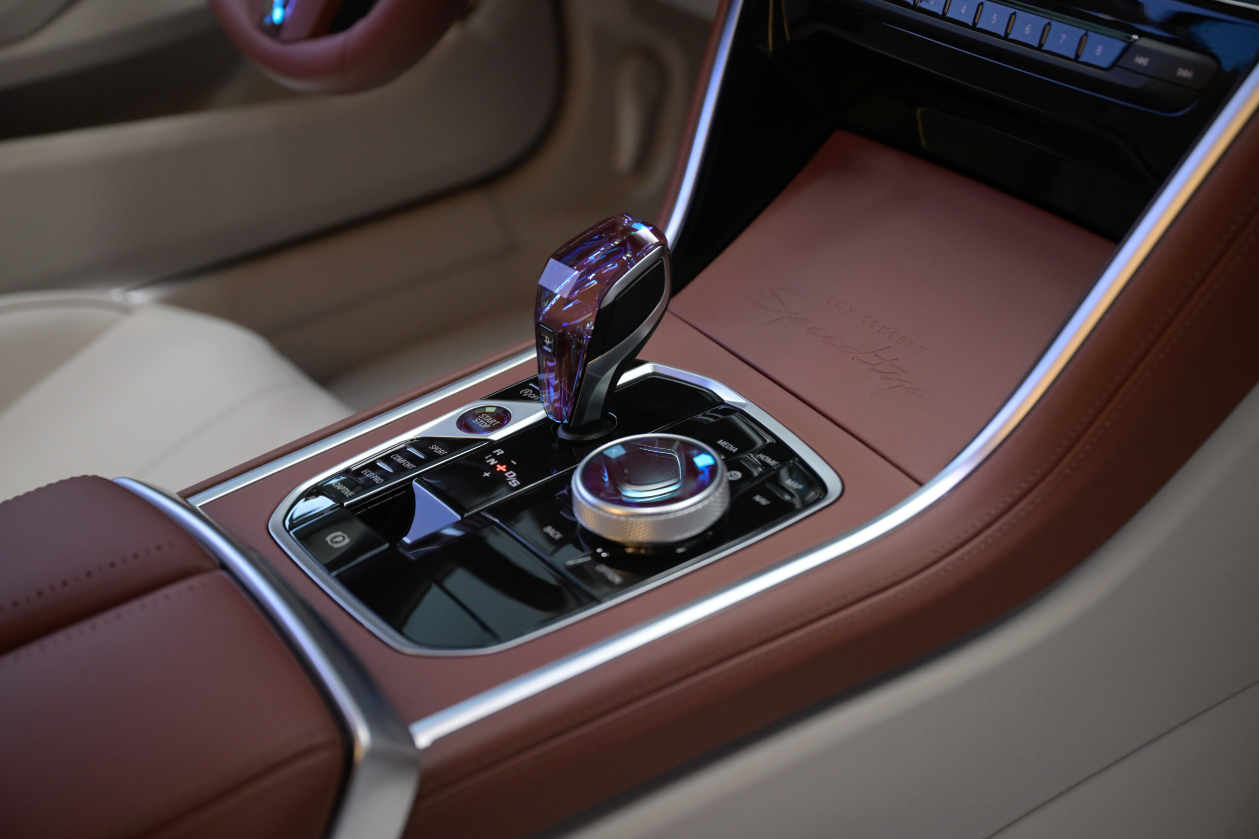 The trunk is also leather-covered and refined with brogue-style perforations. A light beam illuminates the luggage compartment, which is divided into two sections. This allows large items of luggage to be stowed inside for multi-day trips. The elaborate craftsmanship of the exterior and interior was realized with the expertise of the Manufactory workshop at the BMW Group plant in Dingolfing.