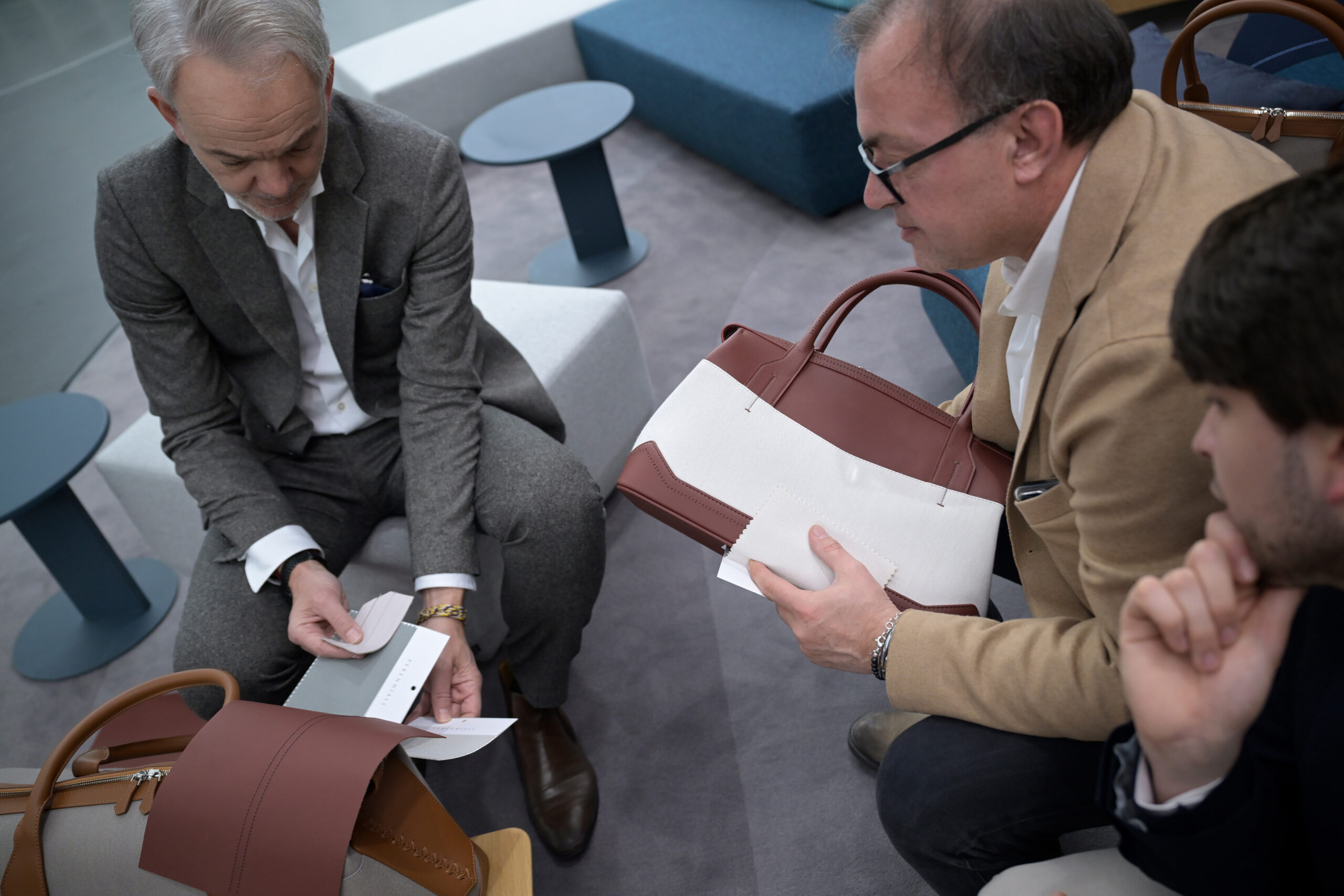 Two storage areas with leather straps behind the seats provide space for two of Schedoni’s made-to-measure bags. The bags were designed exclusively for the Concept to fit in with its color and material concept. A matching weekend bag can also be accommodated in the trunk.