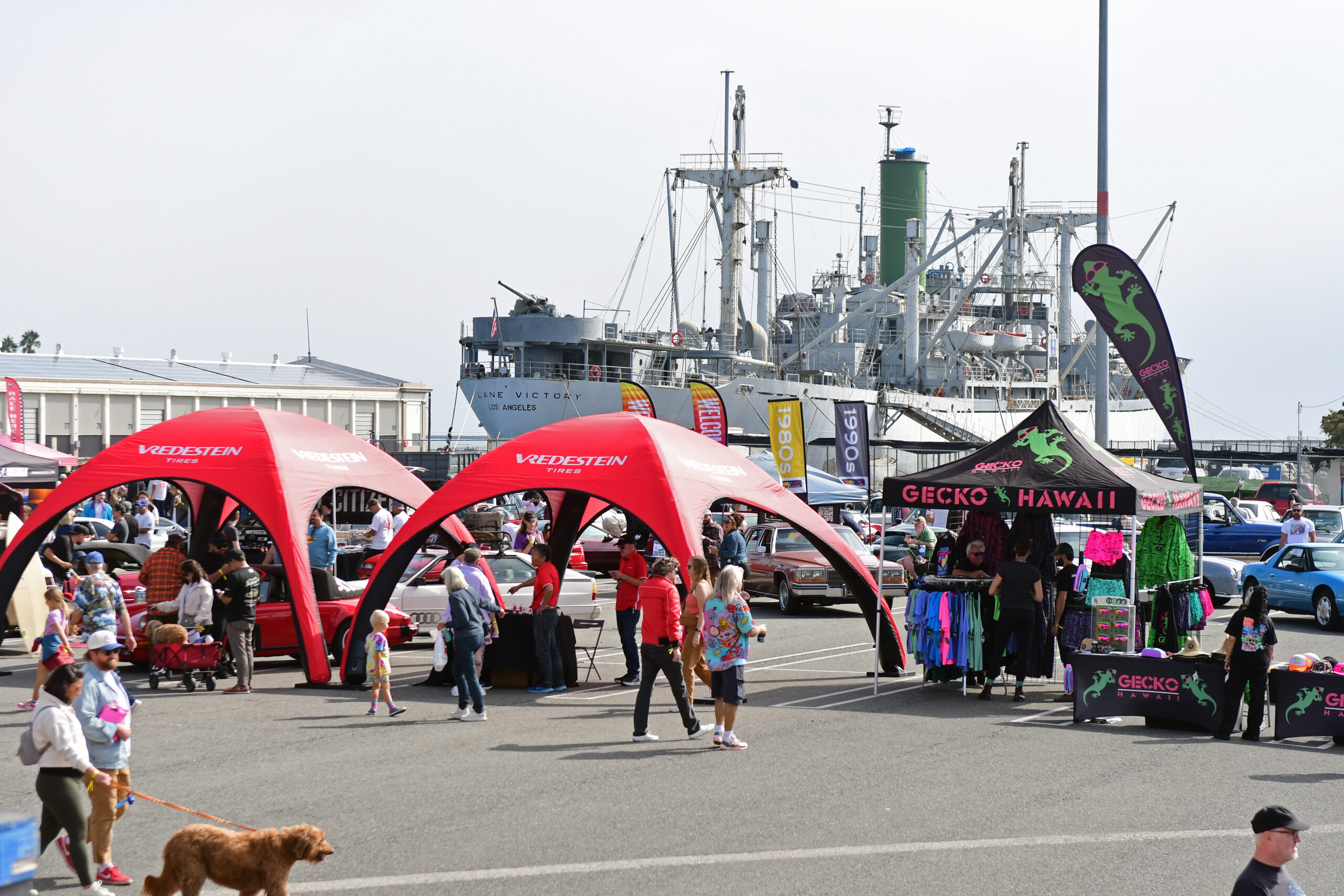 The Royalty section was inside an old warehouse while the general entries parked outside. The retired SS Lane Victory cargo ship loomed behind some of those rows and many vendors, making for a picturesque and historic backdrop. That ship saw time in World War II, the Korean War (including bringing thousands of evacuated Korean civilians and U.S. troops out of Korea), and the Vietnam War, its wartime activities turning to museum ship in 1990—which also makes its arrival Radwood-era appropriate.