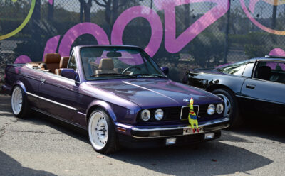 Cervantes is not just a rad-era fan; he’s a BMW fan, too, and brought his 1987 325iS. “I bought it stock in May of 2020 from a friend who had it at Radwood back in 2017,” he explains. “Since then, I’ve completely resto-modded the car mechanically and added some aesthetic touches. Some of those highlights include an engine swap to a Honda K24 that currently puts down 235whp at 7750rpm.”