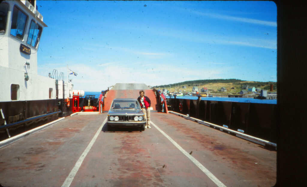 Bertha was my daily driver for my first few years back in Boston, but I gradually transformed it into a drivers-school-capable vehicle with just about every go-fast part that was sold new through Roundel magazine and available used through the local publication The WantADvertiser. I found a rotted ’71 dual-Weber-equipped 2002ti parts car, rebuilt its engine with 10:1 pistons and an Iskendarian 300-degree cam, and swapped it into Bertha, along with the ti struts, big calipers, and brake booster (the same as in the tii). A Koni suspension went in, as did a Getrag 245 5-speed, an ultra-rare Metric Mechanic bracket to hold it in place, Recaro front and rear seats in that “orange Spectrum” fabric, an Alpine/ADS sound system, Cibie Oscar driving lights, even a Wink mirror. In addition to the car doing track duty, Maire Anne and I took it on a last pre-children road trip up to Nova Scotia in the fall of 1987. I have great memories of driving it on the twisty roller-coaster road that runs along Cape Breton.