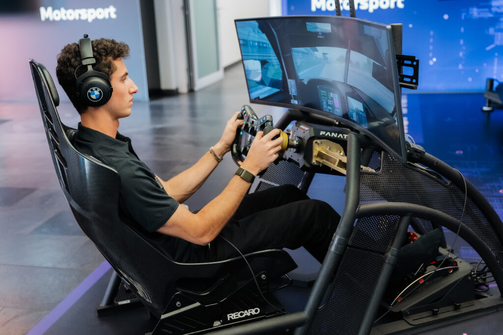 Josh Green on the simulator during the M Racing Academy screening process. (BMW Photo)