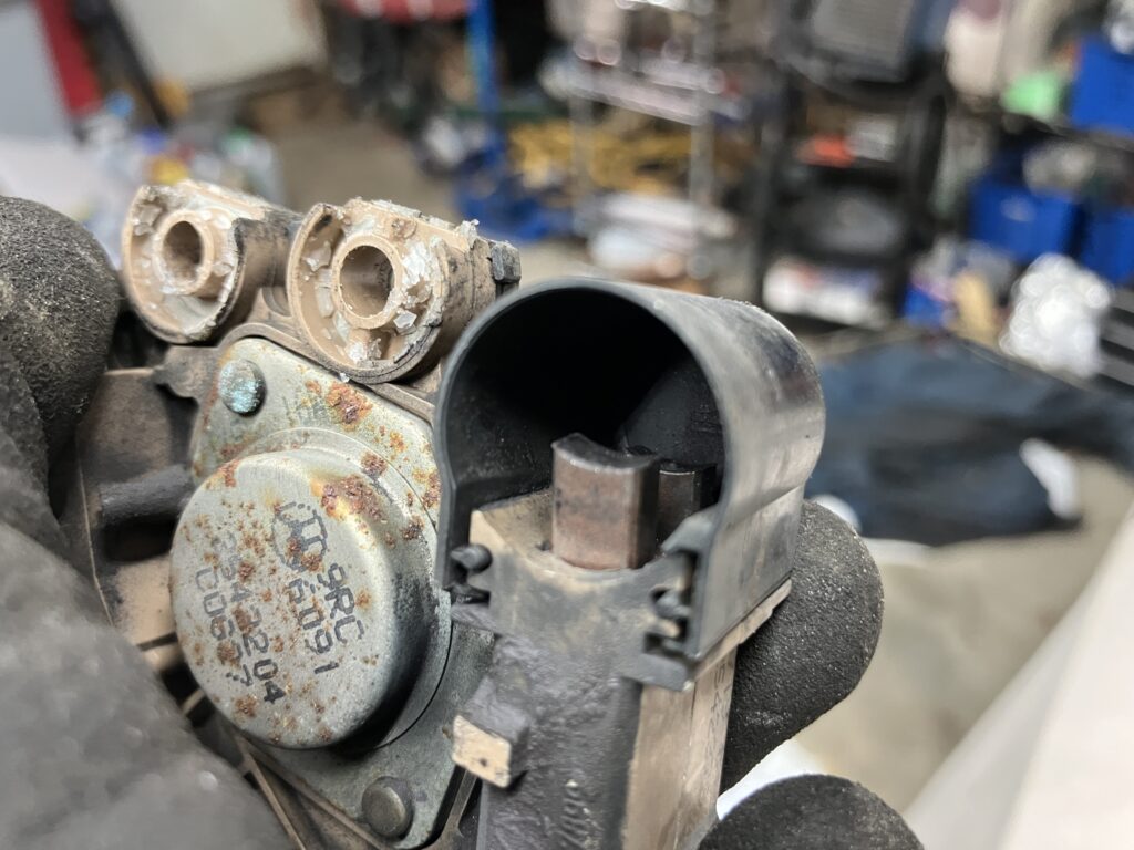 Interestingly, when I shut the car off and put a voltmeter directly across the battery terminals, it read 11.5 volts. I’m not sure exactly what mechanism was causing it to read so much lower at the cigarette lighter.