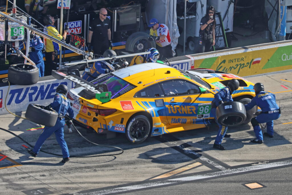The #96 Turner Motorsport M4 GT3 EVO in for a pit stop on Saturday afternoon. [Jon van Woerden photo]