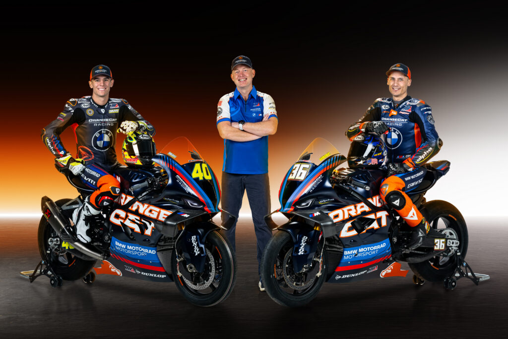 In addition to the factory teams in WorldSBK and FIW EWC, BMW Motorrad will have “official” customer teams competing in the USA, Great Britain, and Japan. The USA team is OrangeCat Racing, which will compete in the MotoAmerica Superbike class in 2026, after competing in the Superstock class last year, where they won the team championship and had both riders in the top three in the rider’s championship. The OrangeCat Racing lineup features American riders Sean Dylan Kelly and Jayson Uribe. Kelly, who is new to the team, was the 2021 MotoAmerica Supersport champion. Uribe has been on the OrangeCat team since 2024 and had eight podium finishes in the MotoAmerica Superstock class in 2025.
