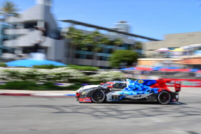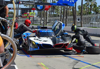 The Long Beach race was for GTP and GTD class cars only. In the Detroit street race in late May, it will be GTP and GTD Pro. Even with only two classes, it’s still crowded on the tight confines of the 1.968-mile Long Beach circuit. There were 28 cars on the entry, with 11 in GTP and 17 in GTD, with BMW represented by the #24 and #25 M Hybrid V8 prototypes in the GTP class, and by Turner Motorsport as the sole BMW entry in the GTD class.